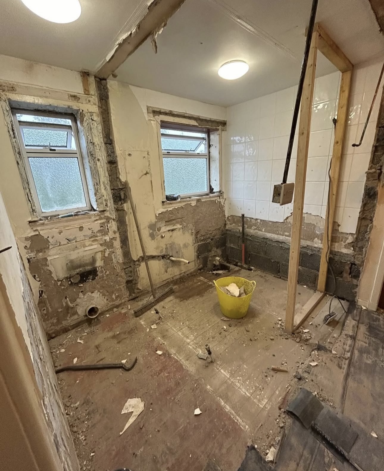 This was an old style property, with the toilet separate to he main bathroom. We removed the brick wall slitting the two rooms, giving us a much larger family bathroom.